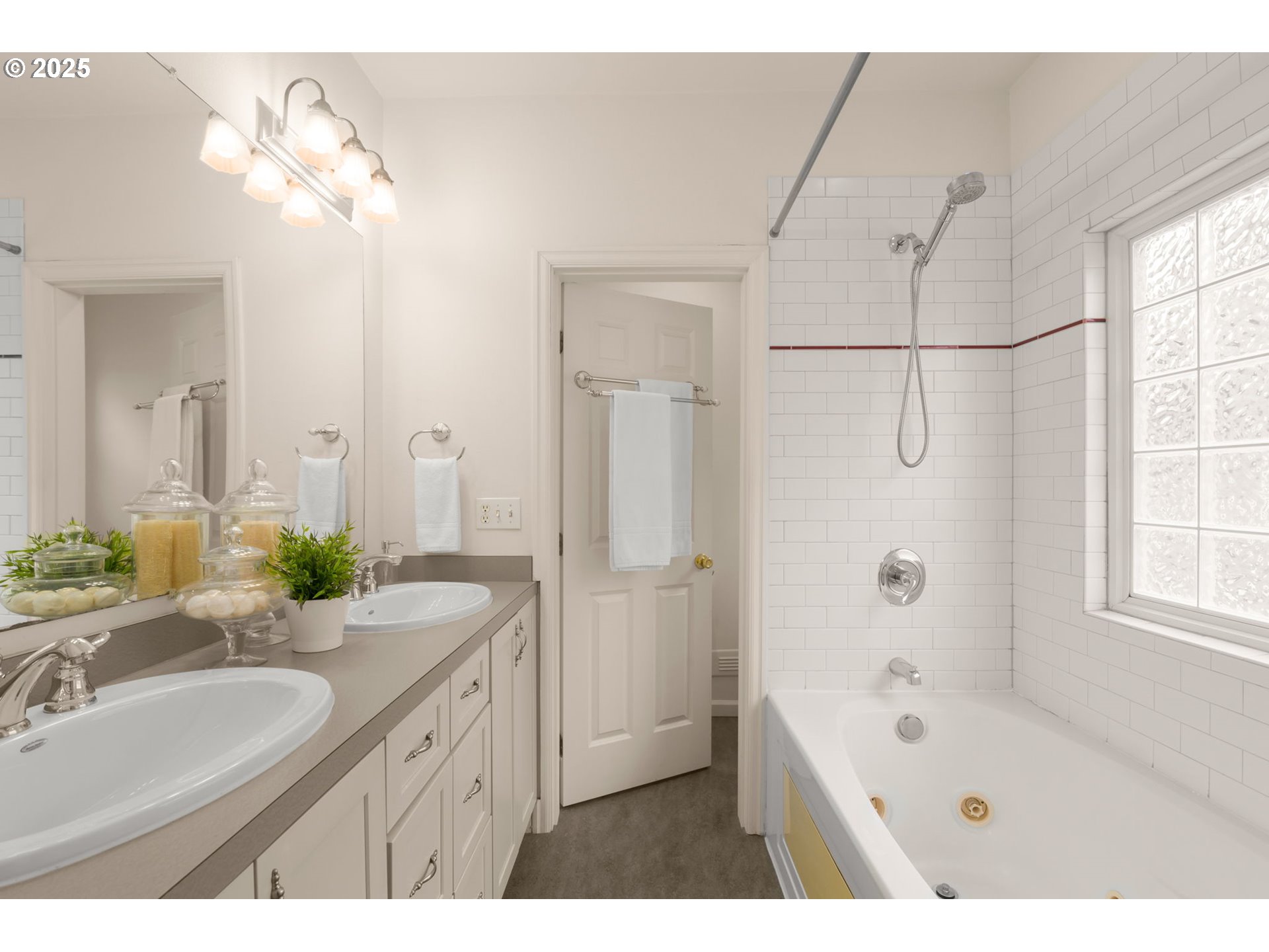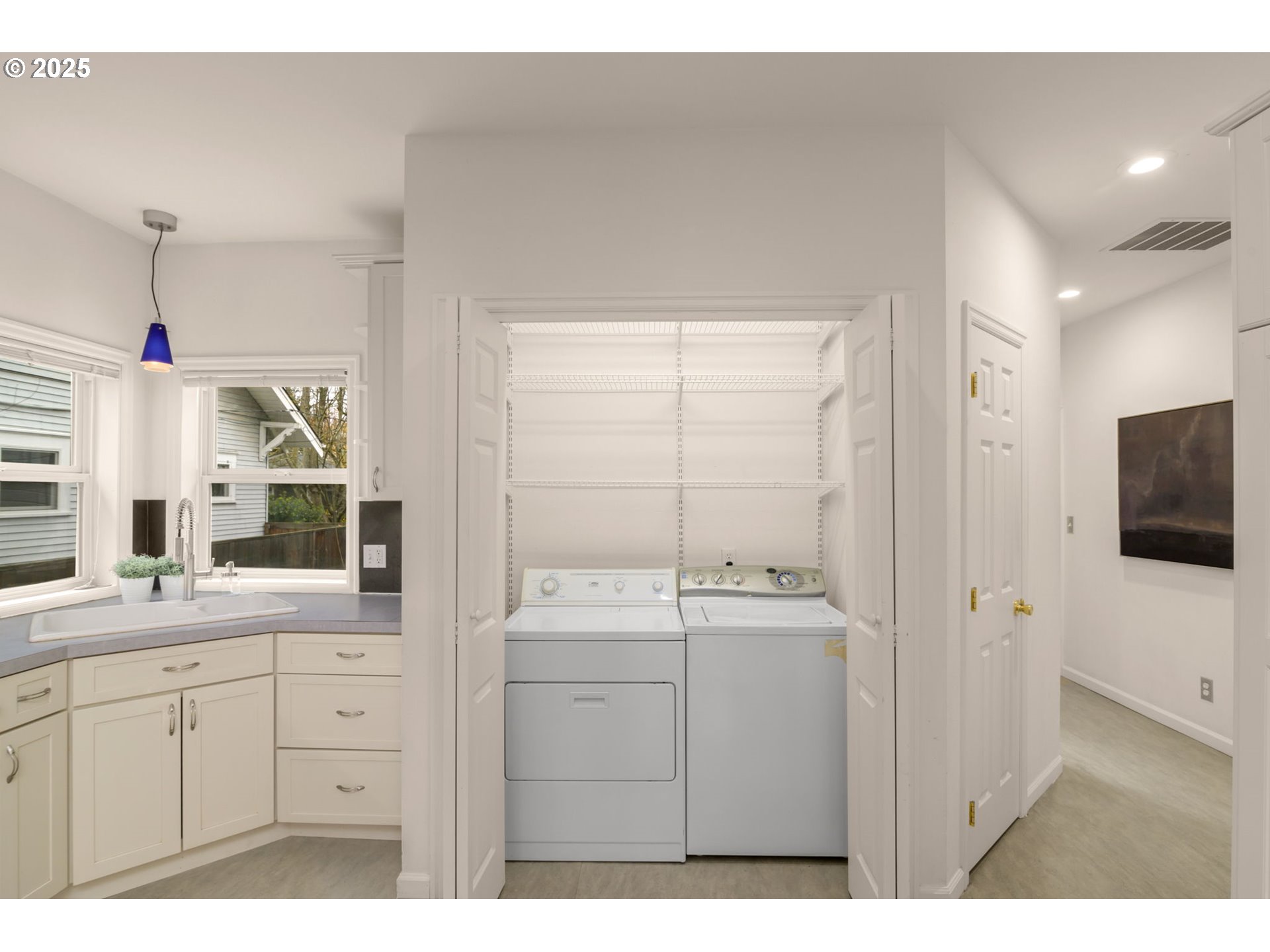 - Fantastic Location! Tidy cottage on a quiet street in a hip neighborhood. Stroll to shops and restaurants in the Hawthorne District or Division Street. This charming home features original oak floors and a versatile floor plan. Large windows allow tons of natural light all day. Primary suite has two large closets and ensuite bathroom with double vanity, oversized jetted tub and a private W.C. Large eat-in kitchen has access to fully-fenced back yard and patio. Full-size washer and dryer on main floor. One-car garage and plenty of on- and off-street parking. Unfinished basement offers loads of storage and potential. Just one block to major bus lines, five blocks to Fred Meyer, eight blocks to Sewallcrest Park. Schools: Abernethy Elementary, Hosford Middle School, Cleveland High School. Bike score 100 and walk score 94! [Home Energy Score = 5. HES Report at https://rpt.greenbuildingregistry.com/hes/OR10243060]