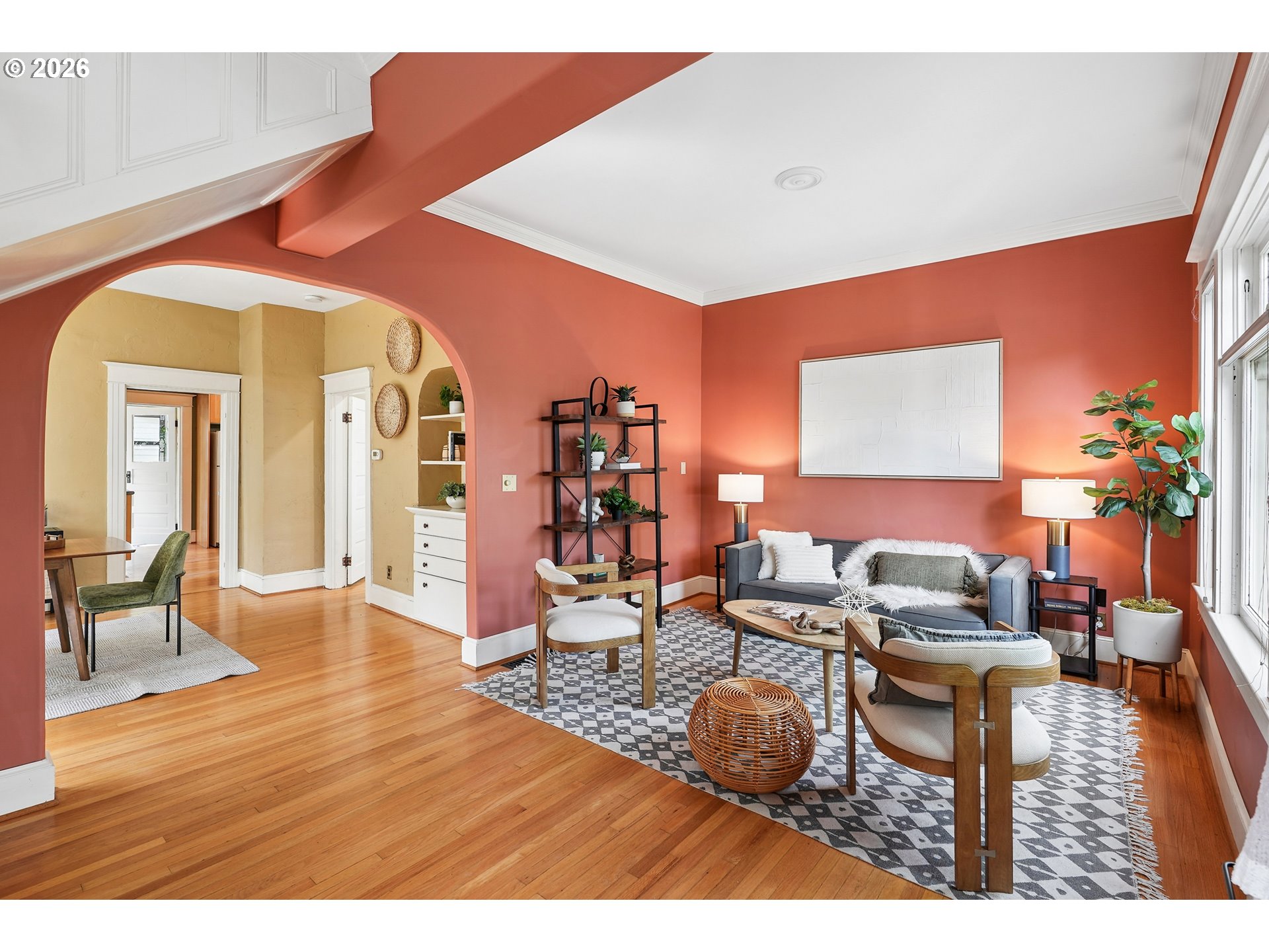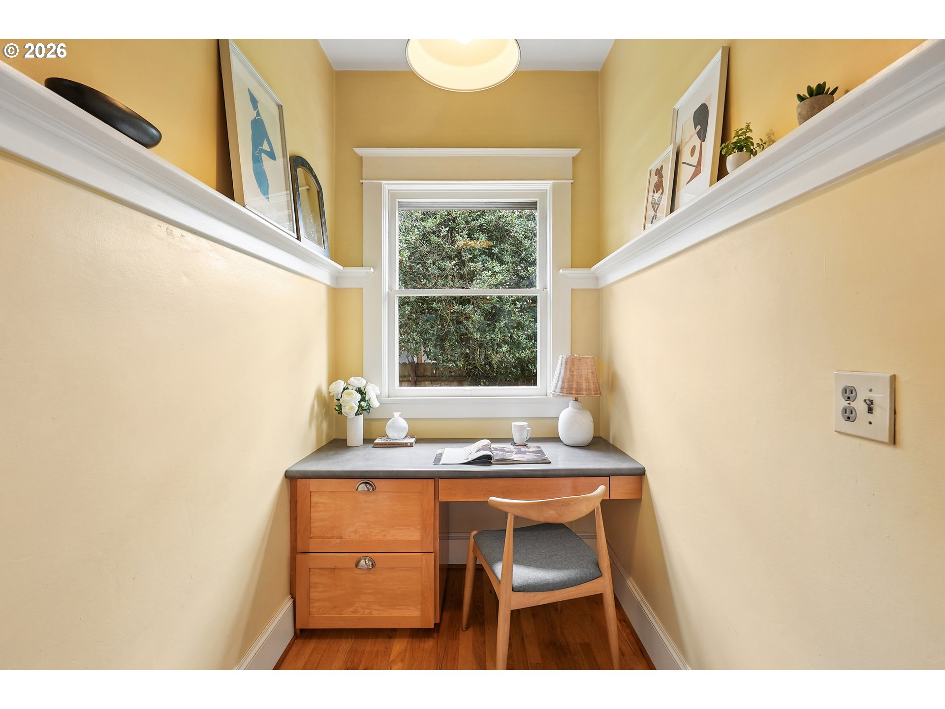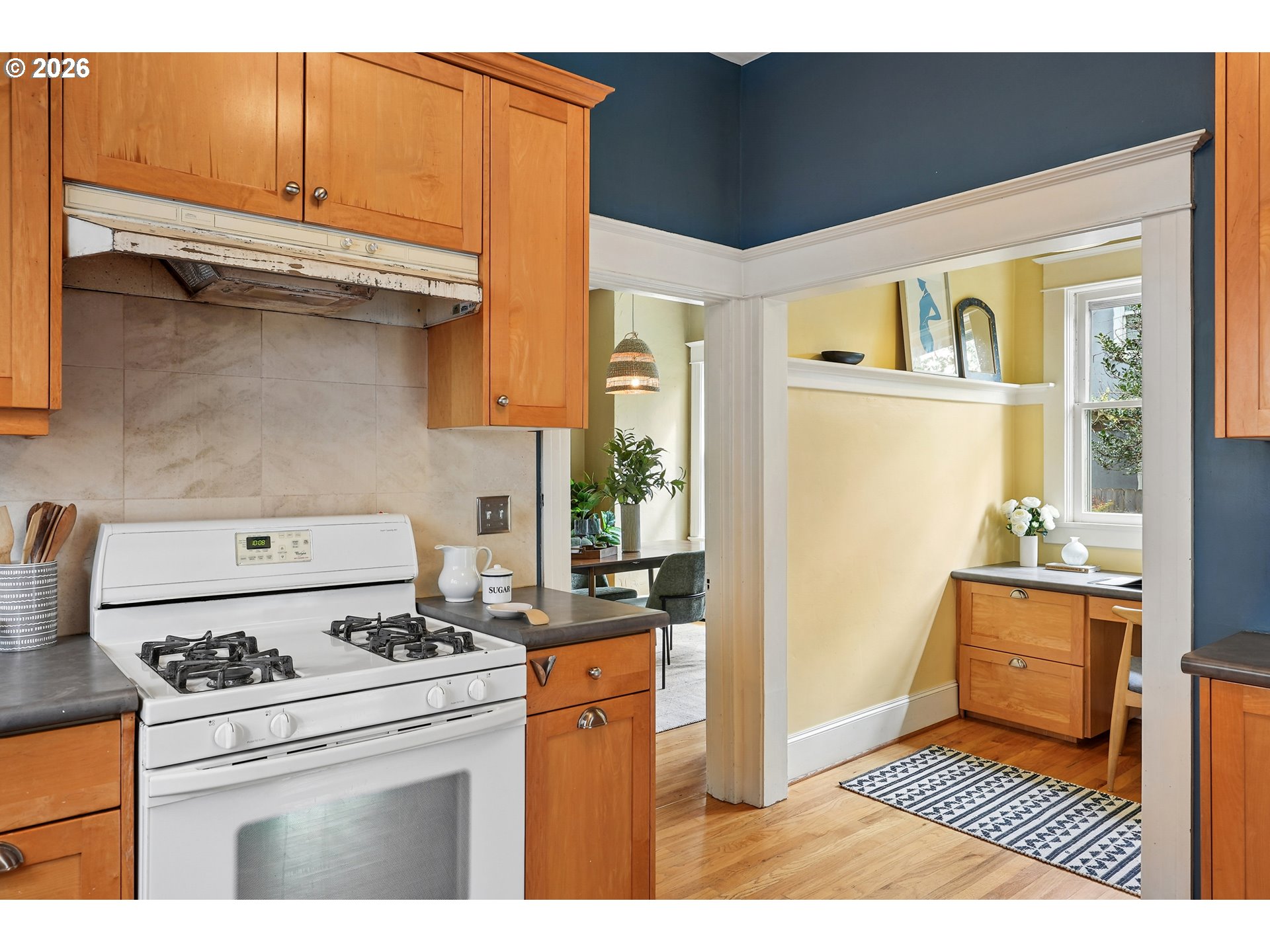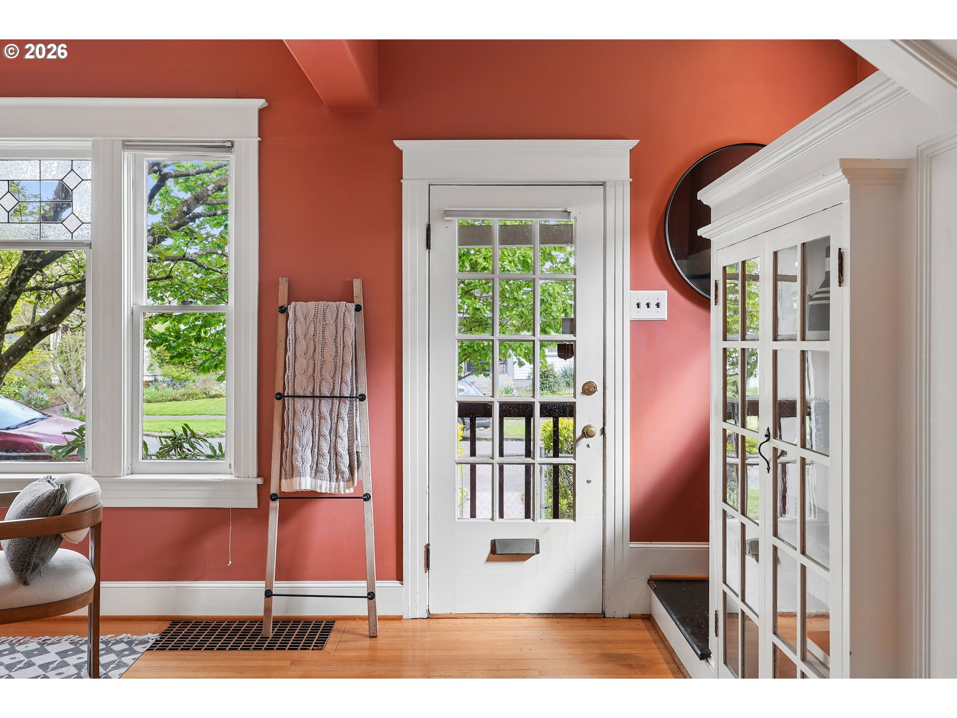 - Incredibly charming farmhouse just moments away from hot and happening downtown Montavilla. Enter through the quaint covered front porch and be greeted with an abundance of 1912 details. From the hardwood floors, built-ins, nooks and coved archways, this home has all the character to boot. Dining room is accompanied by soaring ceilings and main level bedroom, den or office. Enjoy the large kitchen with wood cabinets, modern light fixtures and attached nook ready for your ideas. Host dinner parties or sip your morning coffee from the back sun porch with a surround view of the backyard and darling brick patio. Upstairs, you'll find the primary bedroom with walk-in closet and vaulted ceilings along with 2 additional bedrooms and full bath. Rare alley-fed oversized 2-car detached garage is ready for all your toys and hobbies plus you'll be able to capitalize on the unlimited potential of this already blossoming fenced backyard space. Conveniently located and just moments from a plethora of some of Portland's favorite restaurants, cafes and shops not to mention the beautiful 176-acre Mt. Tabor park.