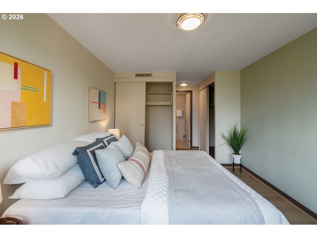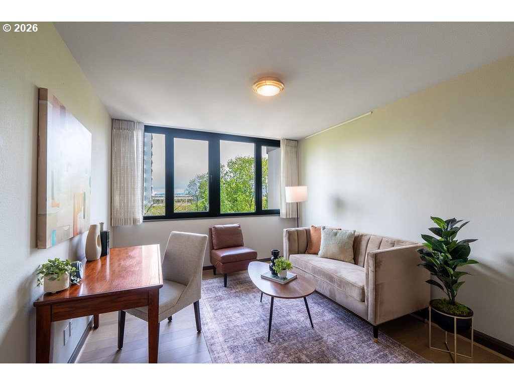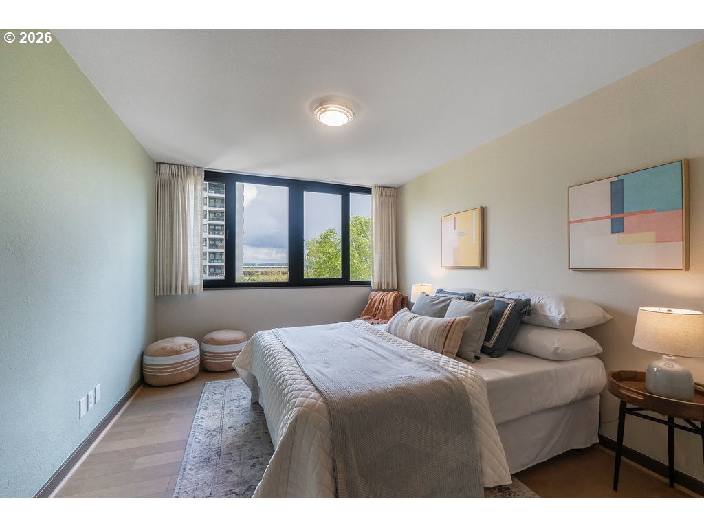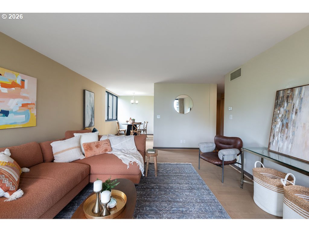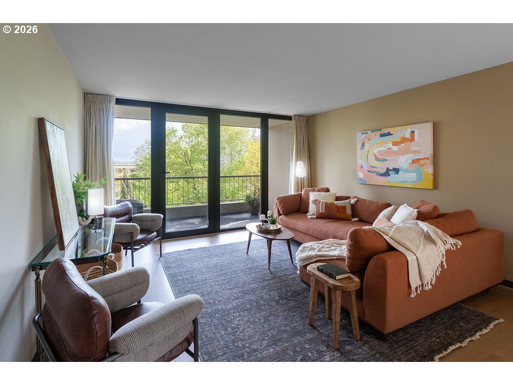 - Urban living meets iconic design in this corner-unit home located in the historic Halprin Landscape District. Tree-lined paths and green spaces surround the landmark Skidmore, Owings & Merrill–designed SW Harrison West community, offering a timeless Portland lifestyle.Move-in ready, this 2-bedroom, 2-bath unit of the original owner, sits in the heart of downtown Portland with easy access to the waterfront, PSU, museums, theaters, parks, restaurants, shops, daily conveniences, TriMet and bus lines. Enjoy the quiet space overlooking the courtyard with peak-a-boo eastern views. Luxury vinyl plank throughout the floor plan. Recent updates from the main entrance to the front door of the unit, welcome you to your own city haven. The community offers an extensive list of HOA amenities: pool, spa, sauna (South Tower), gated courtyard, secure parking & storage, common areas, community room, BBQ area, high-speed internet, laundry facilities and evening security. HOA dues also include laundry, on-site management, grounds maintenance, water, sewer, garbage. Pets allowed with restrictions, rentals permitted with no rental cap or short-term rentals. Recent updates include exterior paint and deck resurfacing in 2021, with elevator improvements currently in progress. **Move-in fees and owner orientation required.