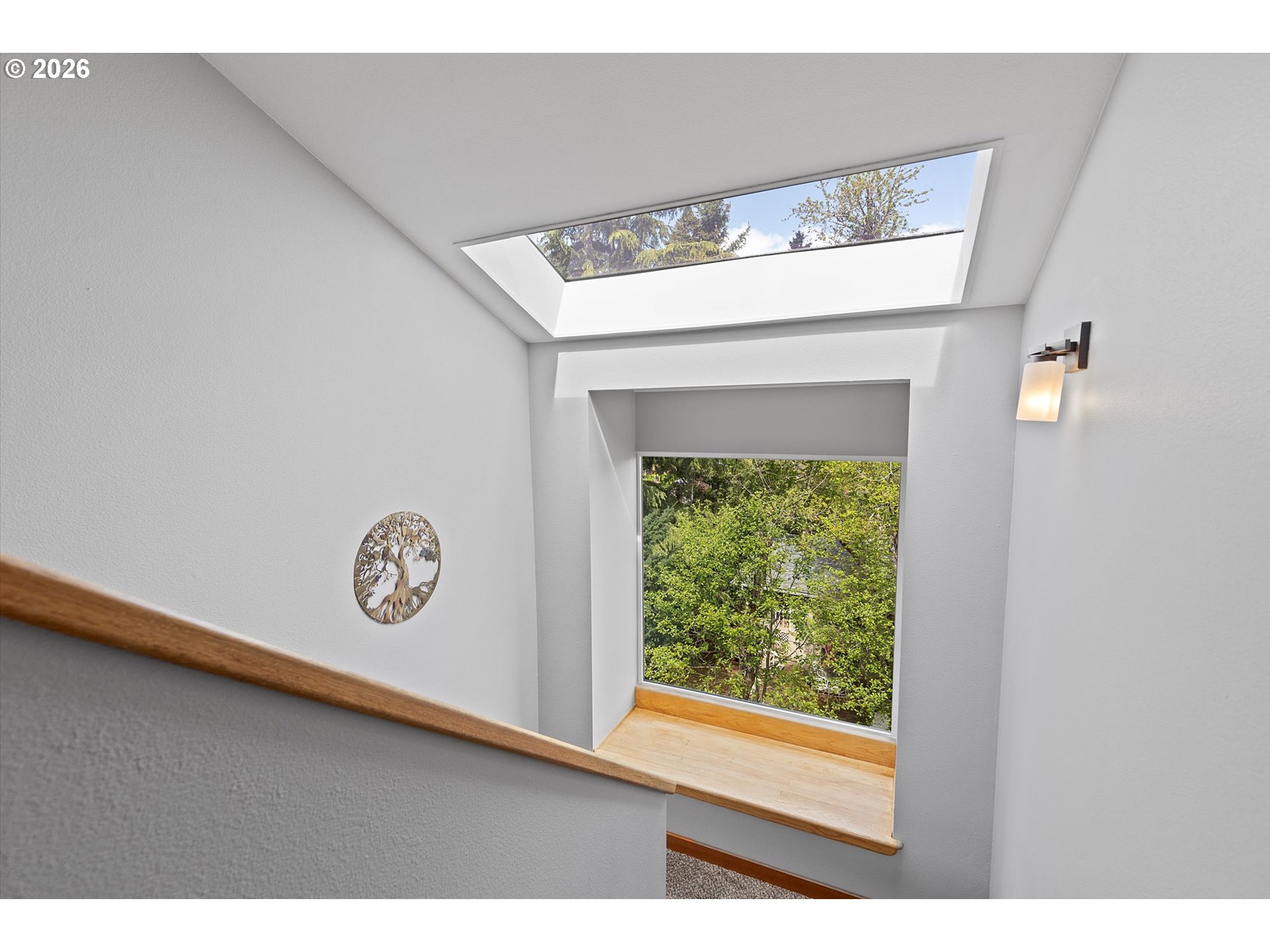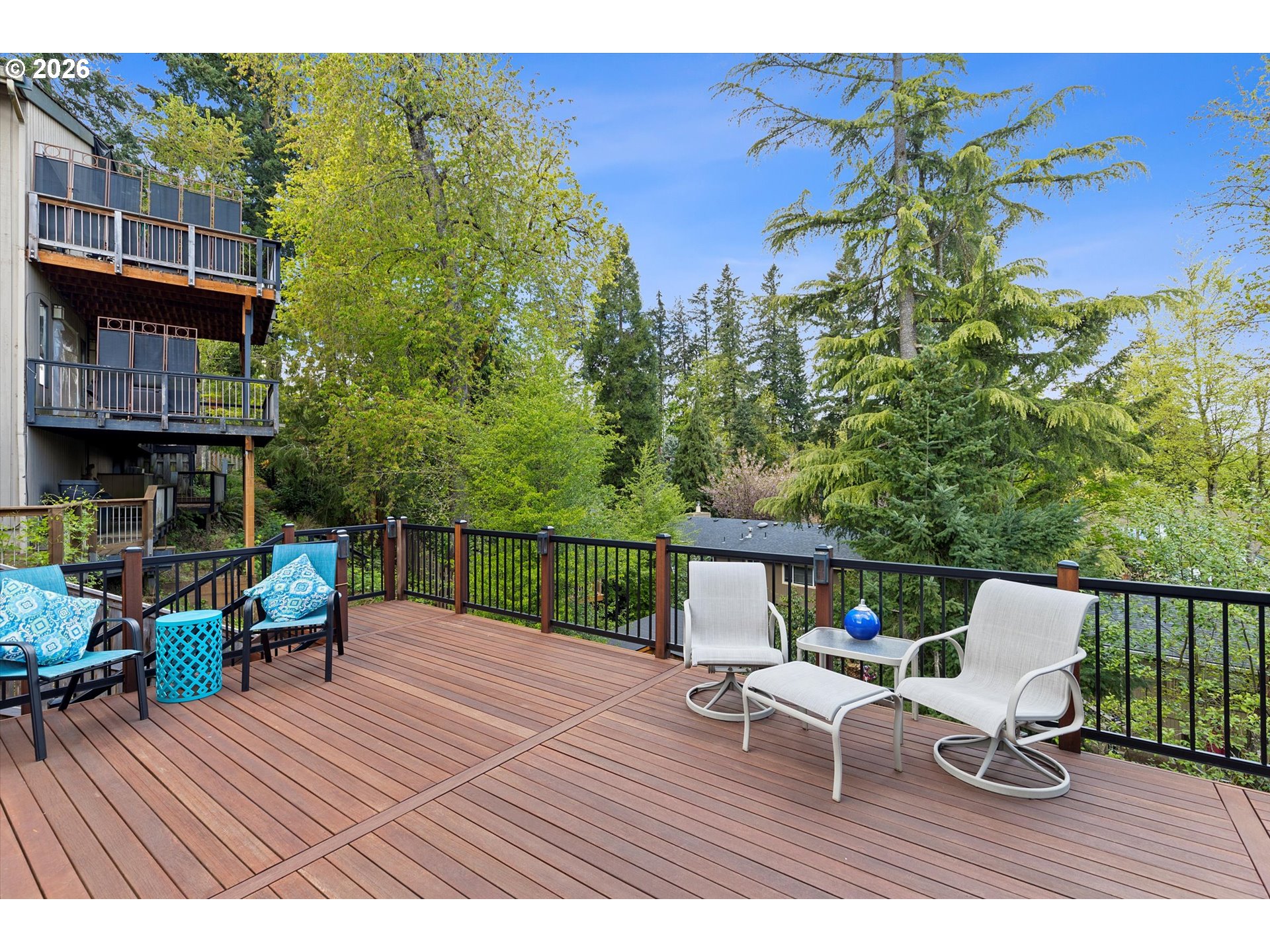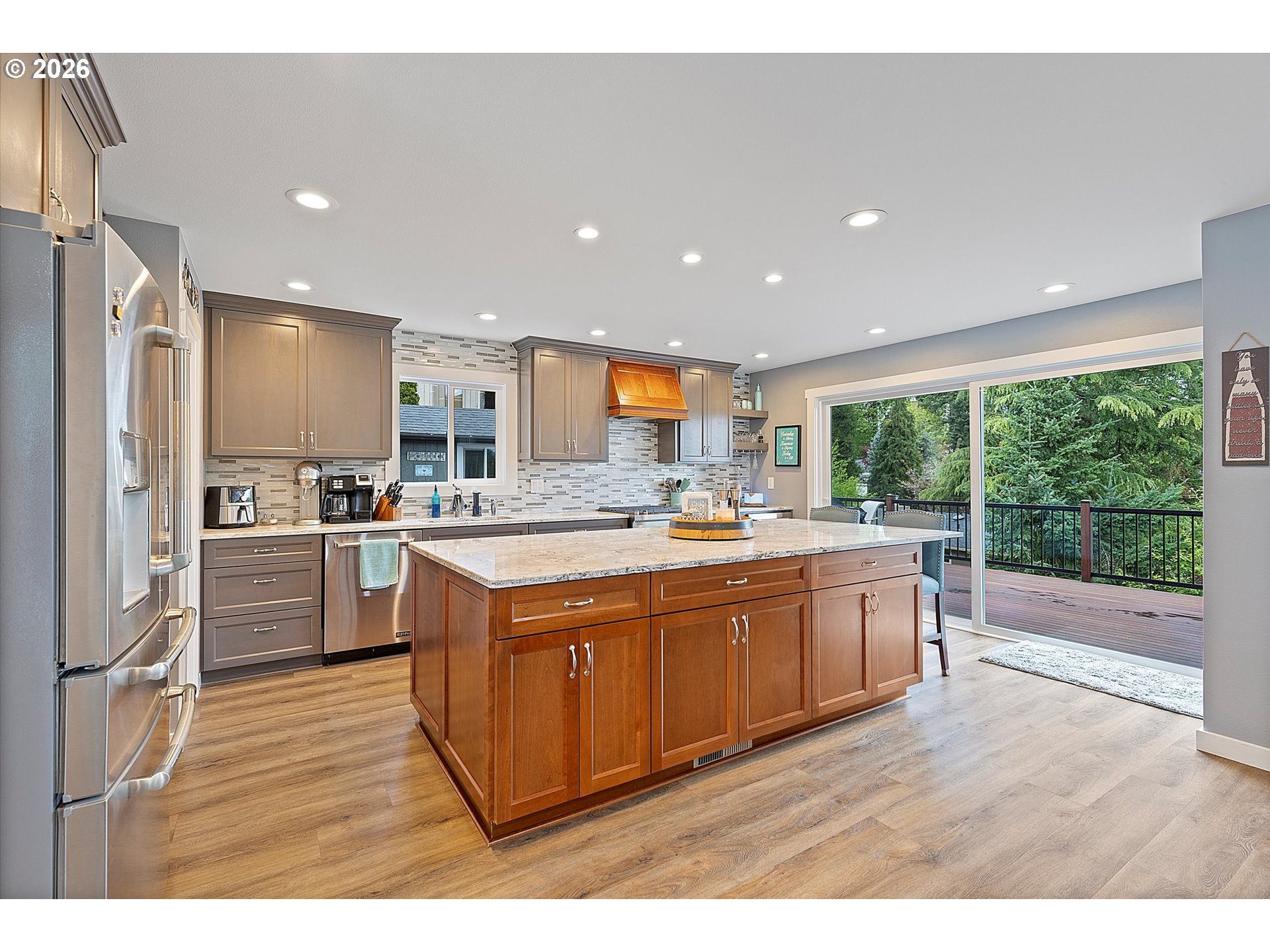 - This fully updated Northwest Contemporary residence, situated in the highly sought-after Rosemont Summit neighborhood, offers 2,731 square feet of refined living space on a .24-acre lot. The multi-level architectural design features high-end finishes, vaulted ceilings, exposed wood beams, and expansive windows that bathe the primary living areas in natural light. The MAIN LEVEL is the heart of the home and features a spacious great room anchored by a gas fireplace. The gourmet kitchen is a chef’s dream, boasting Cambria granite countertops, premium stainless-steel appliances, a wine fridge, and a custom island, all cabinetry offers soft-close and a pantry. Beautiful LVT flooring extends through the dining area, where a 10ft slider opens to a sprawling deck—an ideal layout for entertaining. This level also includes a dedicated home office with a built-in desk, a laundry room, and convenient garage access. The UPPER LEVEL is dedicated entirely to the vaulted primary suite, featuring a large closet and a spa-like ensuite with dual vanities and a large tiled shower. The LOWER LEVELS offer additional bedrooms with high ceilings and a secondary living area or study that opens to the backyard via sliding doors. You’ll also find a dedicated wine room and a versatile third bedroom or flex space, currently utilized as a private exercise room complete with a sauna. EXTERIOR & SYSTEMS: Outdoor living is prioritized with multiple decks, including a rich mahogany back deck with an automated awning and a durable Trex front deck. The private, sloped yard includes a sprinkler system and a storage outbuilding. The 2-car garage comes equipped with a Tesla charging station. Peace of mind comes standard with a newer roof and gutters (2016) and a high-efficiency HVAC system (2023). The LOCATION Perfectly positioned within the West Linn-Wilsonville School District. Enjoy the close proximity to parks, local trails, and Pacific Northwest outdoor recreation. Mt. Adams view. No active HOA.