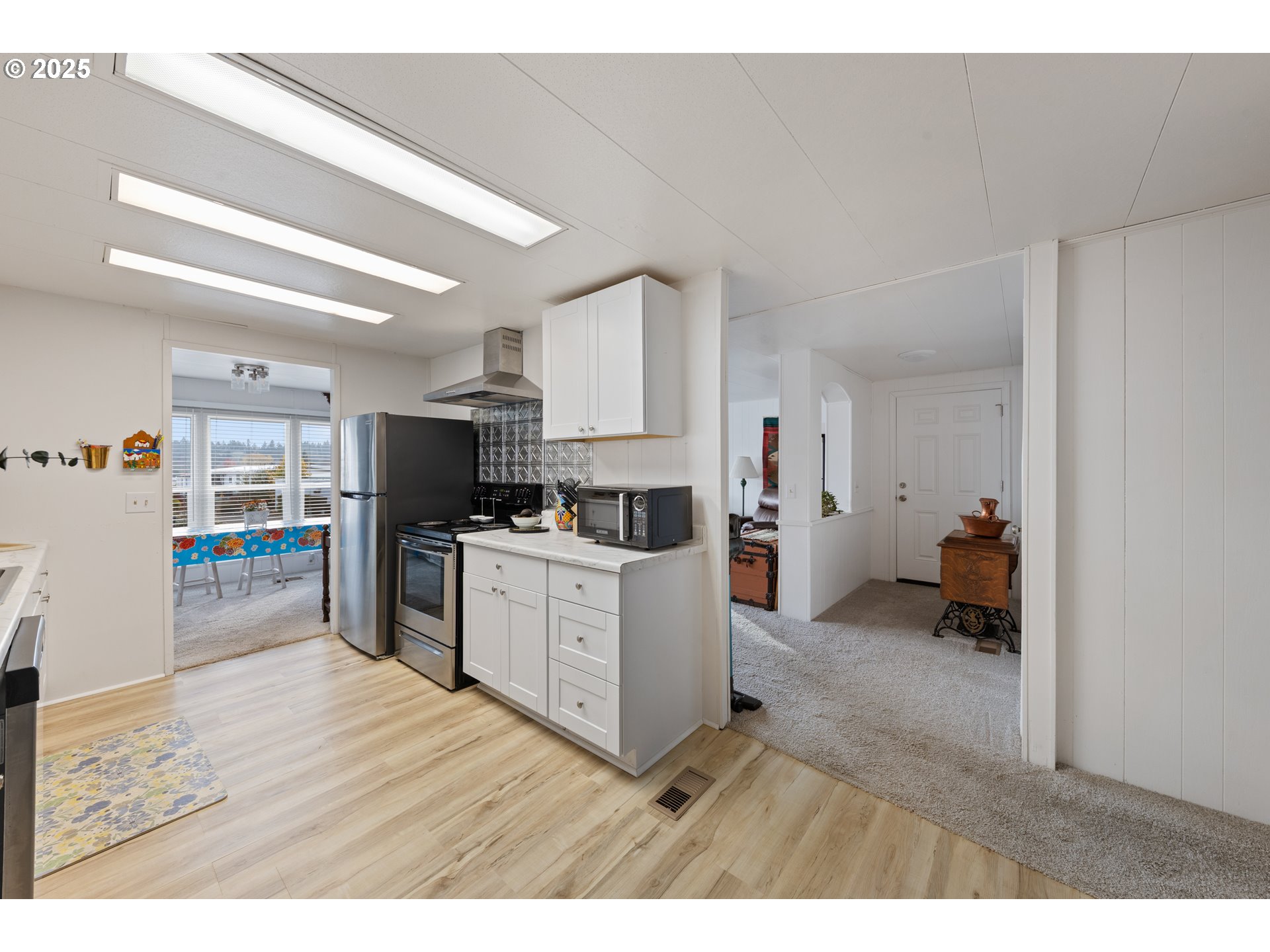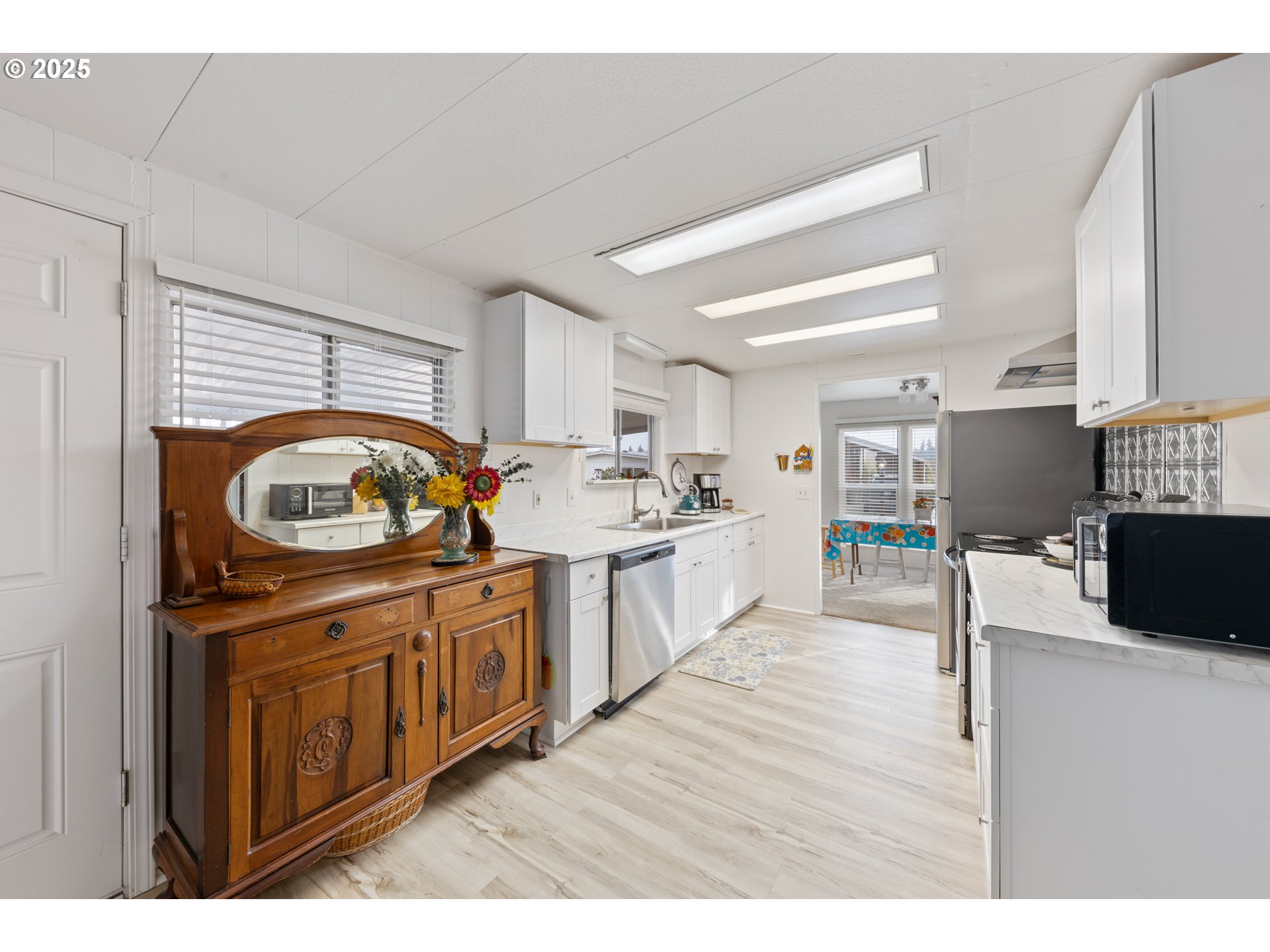 - Welcome home! This home is updated and renovated, ready for you—great location with views of the green space next to the house and the landscaping behind it. Newer stainless-steel appliances, carpet, paint, a gas furnace, vinyl windows, beautiful updates to the functional and bright kitchen and both bathrooms, and plank floors make for a turnkey interior. Exterior updates include paint and a newer metal roof. Storage/ workshop with power and lights—all in the high-demand El Dorado 55+ community.