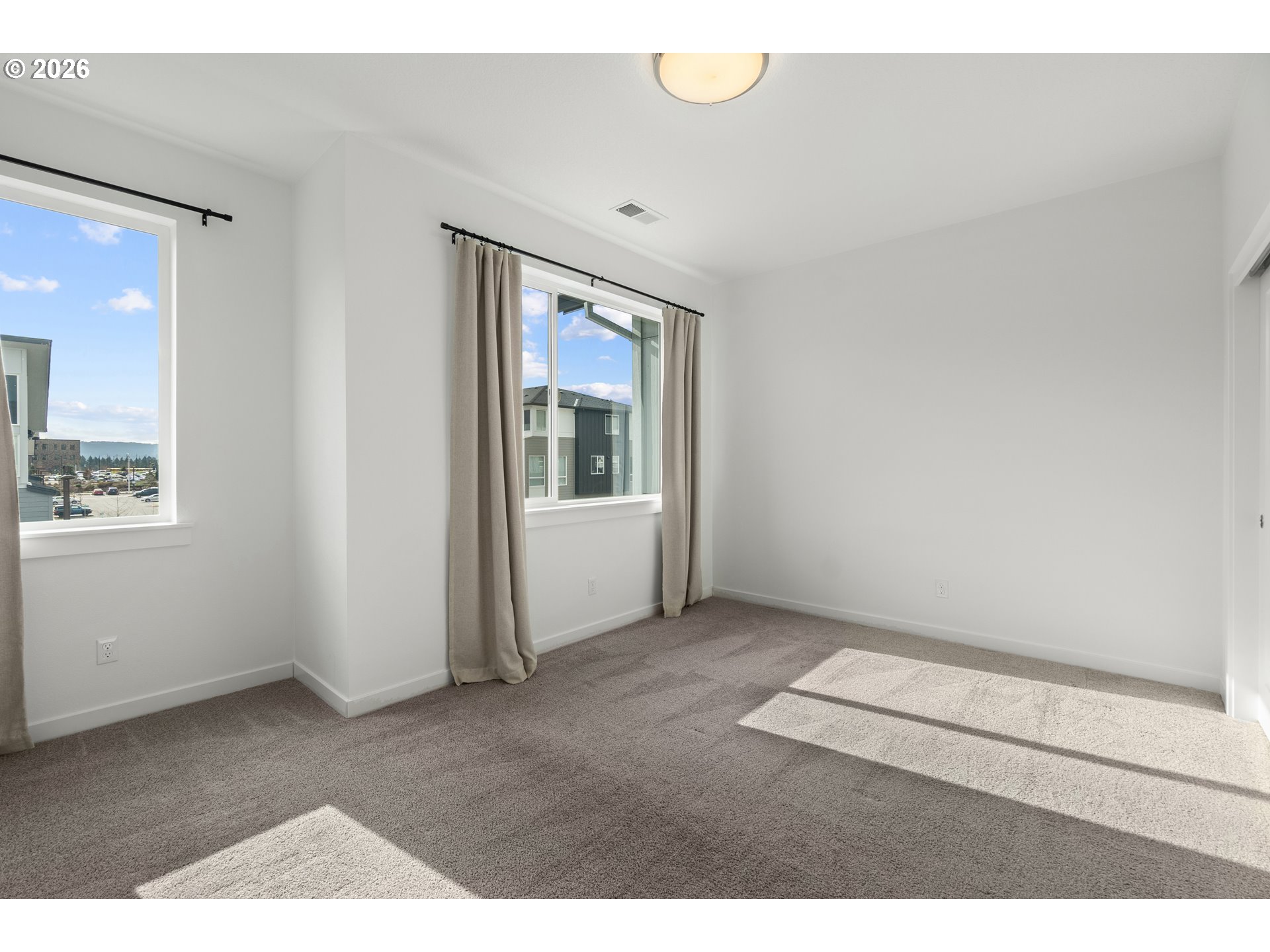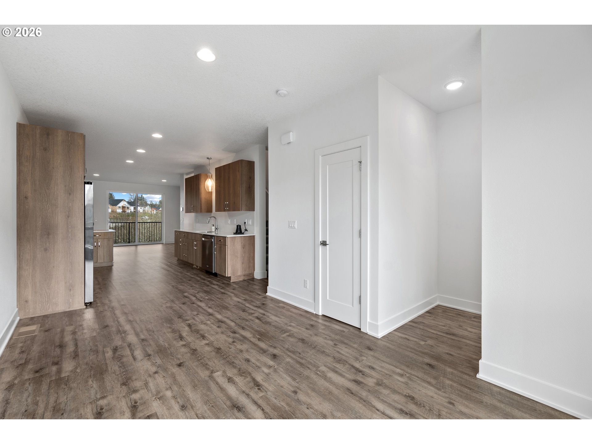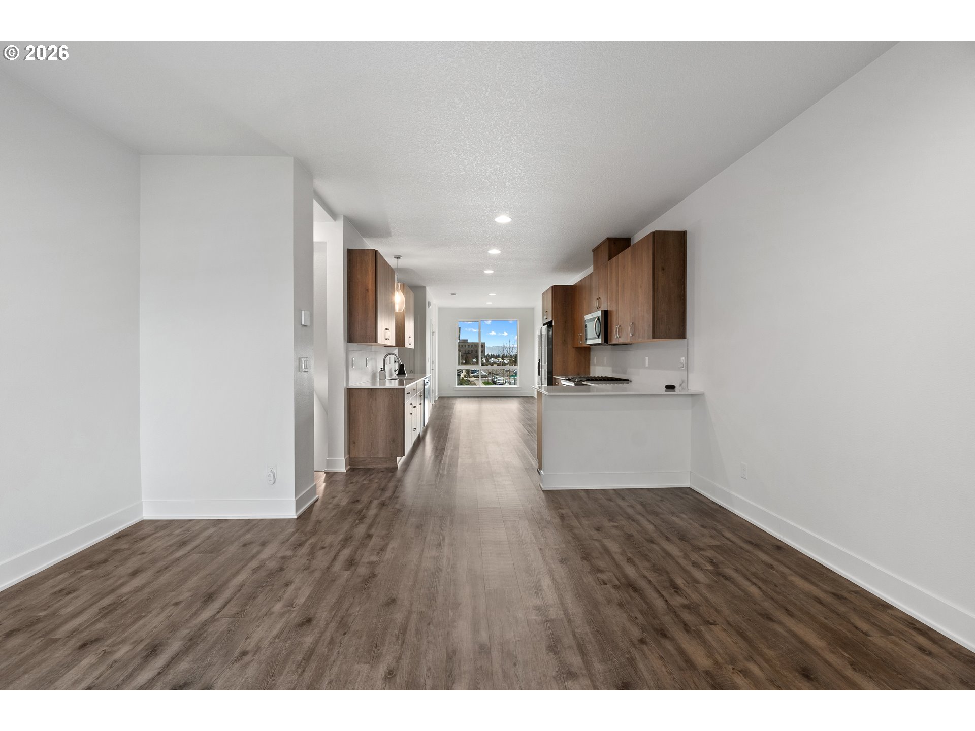 - Modern townhome in Mountainside offering greenspace views, a fenced yard, and an open, light-filled layout. Expansive windows and luxury vinyl flooring create a bright, contemporary feel throughout the main level. The kitchen features soft-close cabinetry and quartz counters, while the owner’s suite includes a walk-in closet and a private bath with dual sinks. Spare bedroom with mountain view, guest bath and laundry complete the upper level. The oversized garage fits two cars plus driveway parking. Additional upgrades include ducted heating and cooling, a heat pump water heater, and energy-efficient finishes. Nearby walking trails connect you to the outdoors, and Progress Ridge and Murrayhill are just minutes away for shopping, dining, and entertainment. Served by top-rated schools: Scholls Heights Elementary, Conestoga Middle, and Mountainside High.