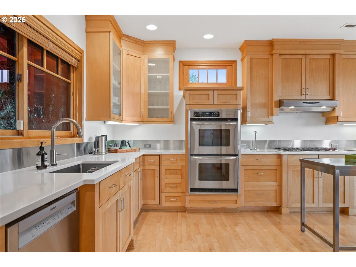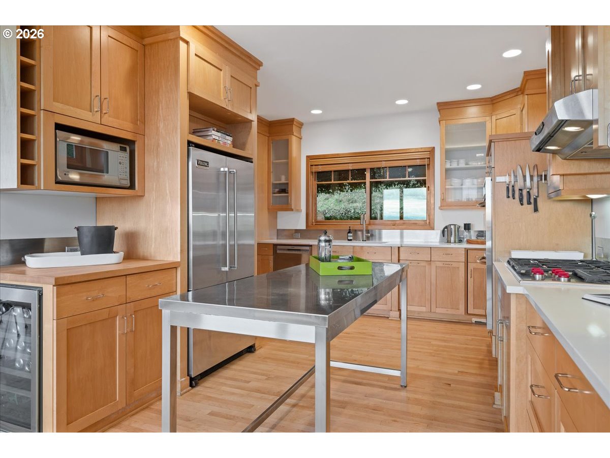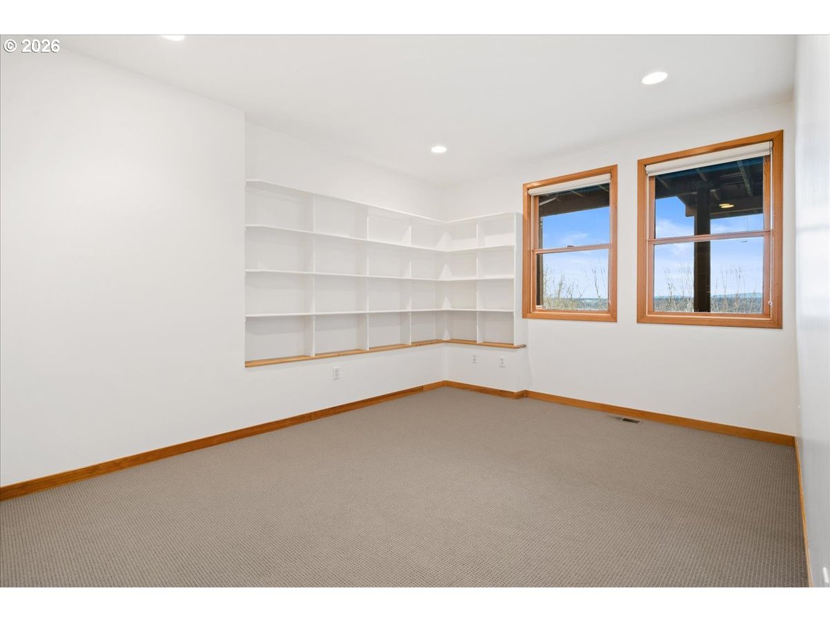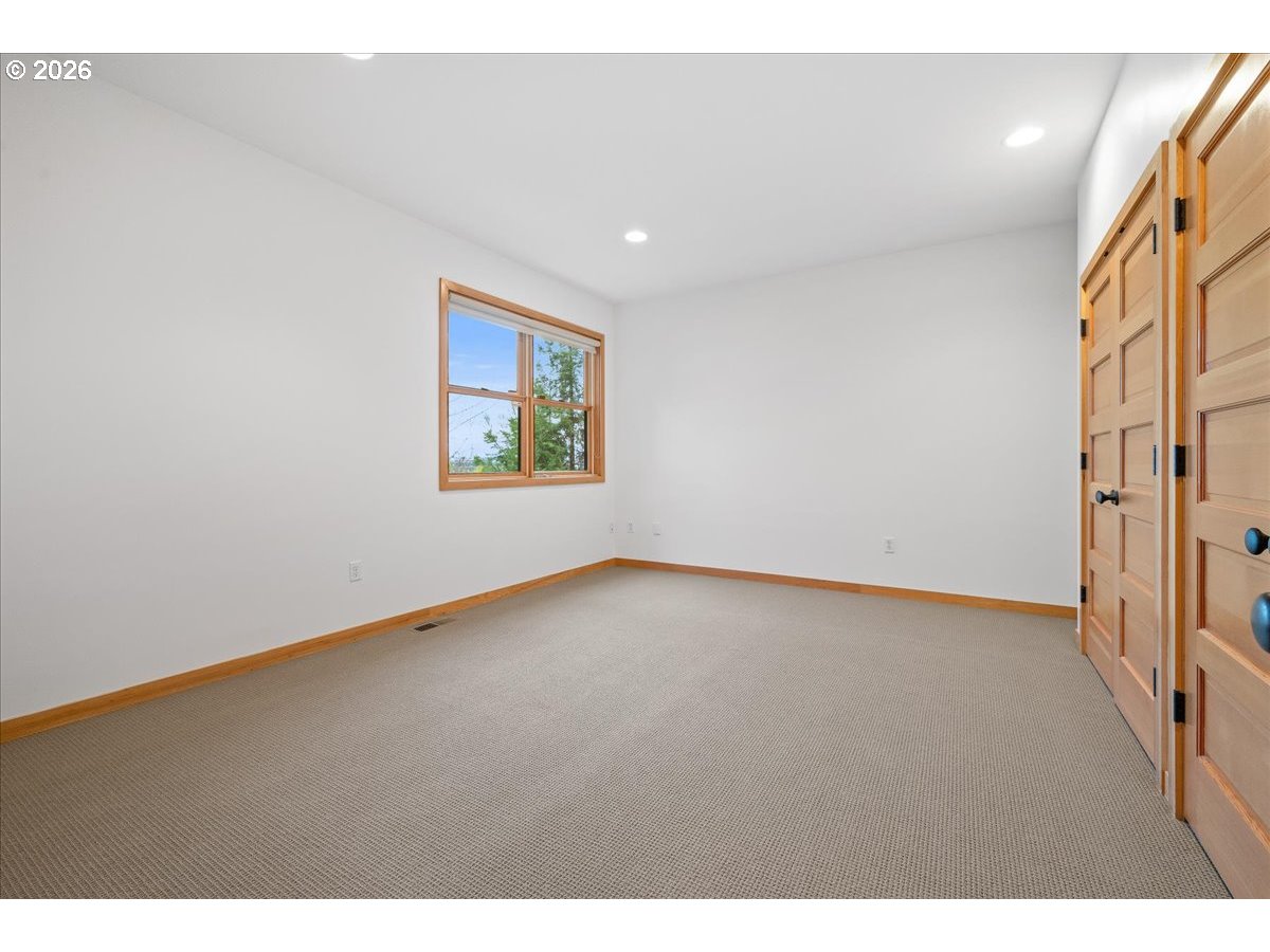 - Kings Heights Contemporary with Sweeping City, River & Four-Mountain Views. Perched above the city in Portlands coveted Kings Heights neighborhood, this striking contemporary home offers nearly 4,000 square feet of light-filled living with panoramic views stretching from the river to four mountain peaks. From almost every level, the horizon unfolds in a sweeping tableau—sky, skyline, and distant mountains shifting beautifully throughout the day.The main level is designed for gathering and easy living in an open-concept floor plan with soaring ceilings & walls of glass. Custom floor-to-ceiling sliding doors open to an expansive view deck, creating a seamless connection between indoors and out. A roomy, feature-filled kitchen will satisfy any home chef. Freshly refinished hardwood floors, a newly painted interior, and a cozy gas fireplace bring warmth and polish to the space.Upstairs, the primary suite is a private retreat in the sky, featuring a radiant floor heated spa bath, generous walk-in closet, and an adjacent office or nursery with French doors opening to a covered, private deck—an ideal perch for morning coffee above the city.The lower level offers exceptional flexibility with a second en suite primary bedroom with private deck access, two additional bedrooms, full bath, laundry, and a spacious rec room with soaring ceilings, wired for A/V and equipped with blackout shades.Thoughtful upgrades include newly painted interior, new wool-blend carpets, gleaming re-finished wood floors, freshly stained decks, zoned HVAC with dual thermostats, a new dual-fuel Lennox furnace and heat pump with S40 smart thermostat, and gas fireplaces in both the living room and upper primary suite. The large, low-maintenance lot supports an easy lock-and-leave lifestyle, complemented by an attached two-car garage with EV charger.This is your Kings Heights penthouse perched above the city!