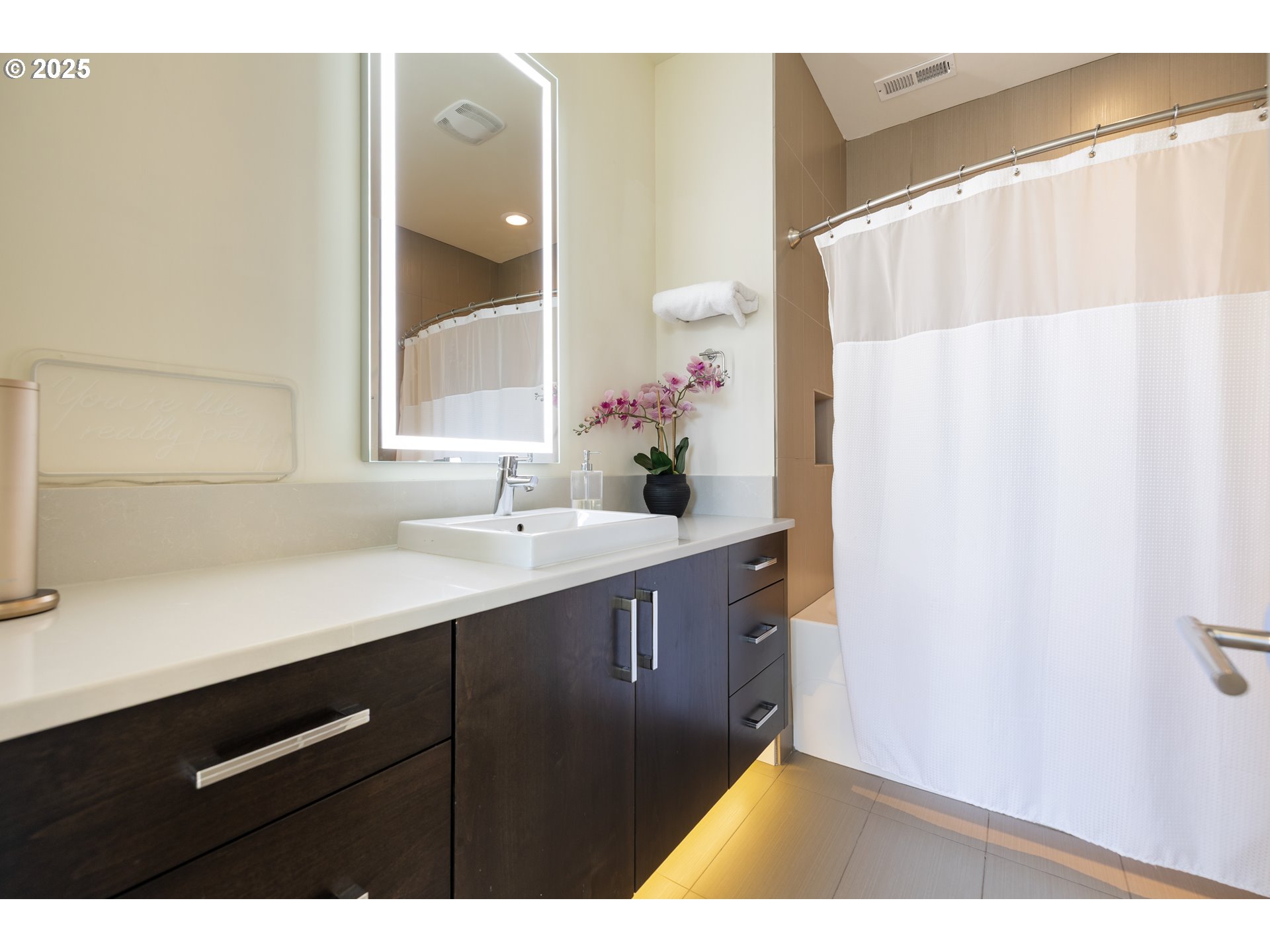 - Nestled in the heart of Portland’s vibrant University Park neighborhood, 7318 N Olin Ave is a modern masterpiece that radiates elegance, comfort, and eco-forward innovation. With a perfect 10/10 Home Energy Score, paid-off solar panels, custom double-paned thermally isolated front & back doors, and EV charging readiness, it sets a new bar for sustainable luxury. Step inside, and the warmth of heated tile floors in the primary ensuite welcomes you, while engineered hardwoods stretch across the entire home, adding timeless charm. The kitchen is a culinary sanctuary, outfitted with Viking appliances, quartz countertops, and flooded with light from floor-to-ceiling windows that make each day feel expansive. Host summer parties like you've only dreamt of with the retractable front deck windows, enabling unparalleled indoor/outdoor living. What truly sets this home apart is how intentionally it’s designed for both quiet comfort and lively entertaining. Custom closets and luxury window drapery echo its attention to detail, while the custom steel floating staircase adds a striking, modern touch. An upgraded HVAC system with four mini-splits ensures climate perfection in every corner, while the pristine solar setup results in an unbelievably low monthly electric bill. The custom enclosed, screened-in back deck, complete with a cozy fireplace, is a dream backdrop for year-round gatherings and relaxed evenings. Every feature—from the architecture to the ambient functionality—speaks to a lifestyle of ease and sophistication. Nothing has been forgotten, and everything invites you to enjoy! Preferred lender offering a concession to be used towards buyer's closing costs/prepaids/rate buy-down!! [Home Energy Score = 10. HES Report at https://rpt.greenbuildingregistry.com/hes/OR10186320]