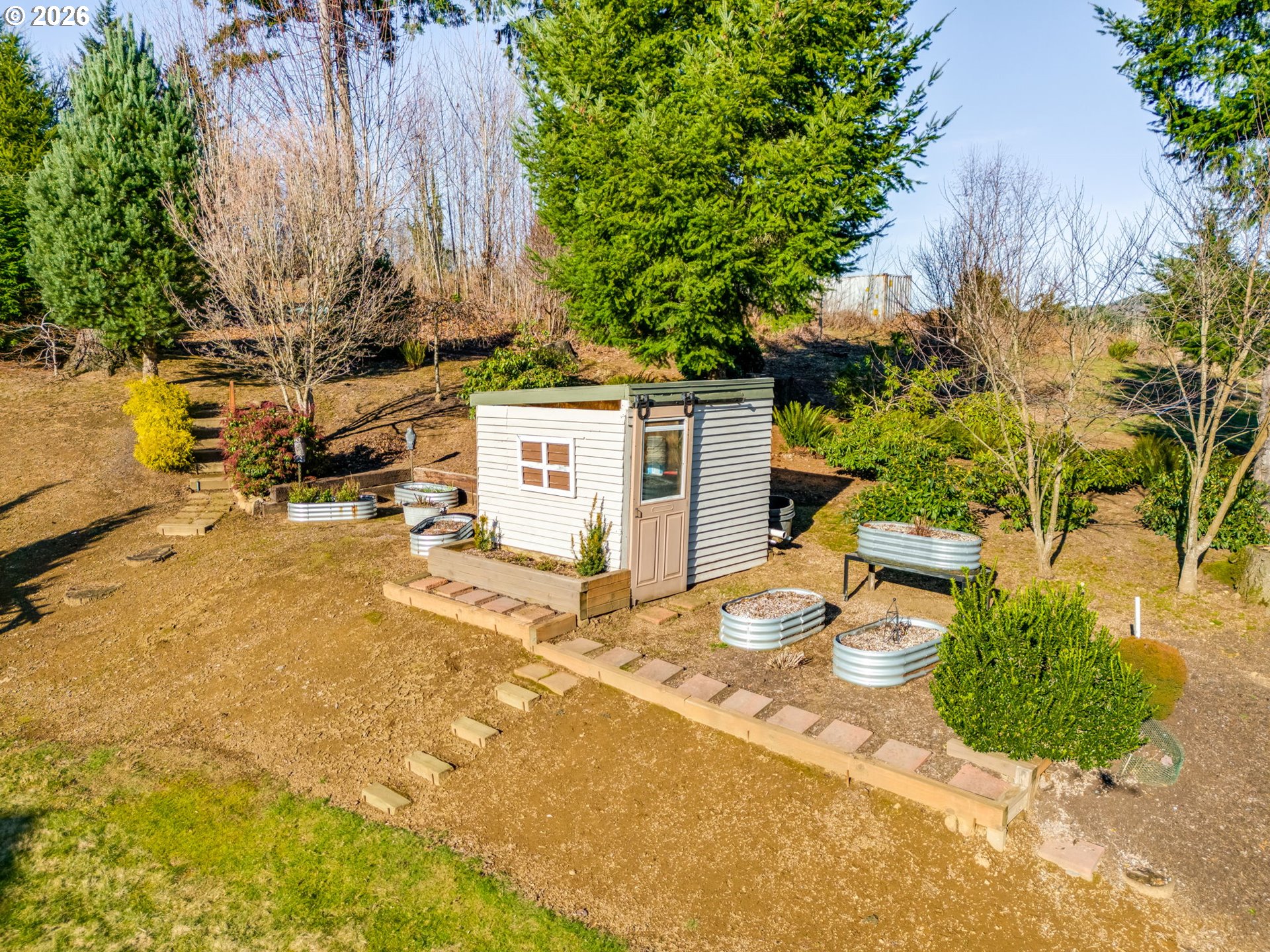 - Covered Deck, Cross Fenced, Fenced, Garden, Raised Beds, RV Hookup, RV Parking, Security Lights, Sprinkler, Tool Shed, Yard