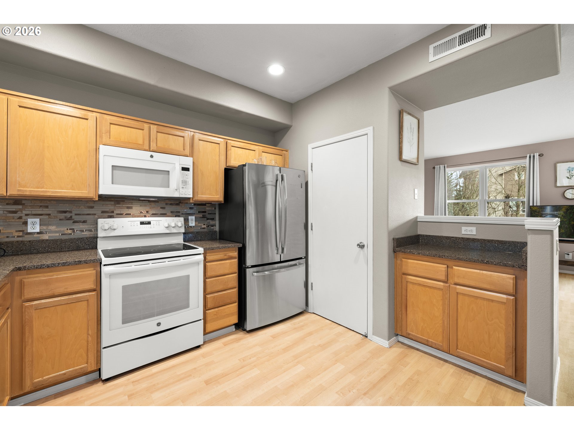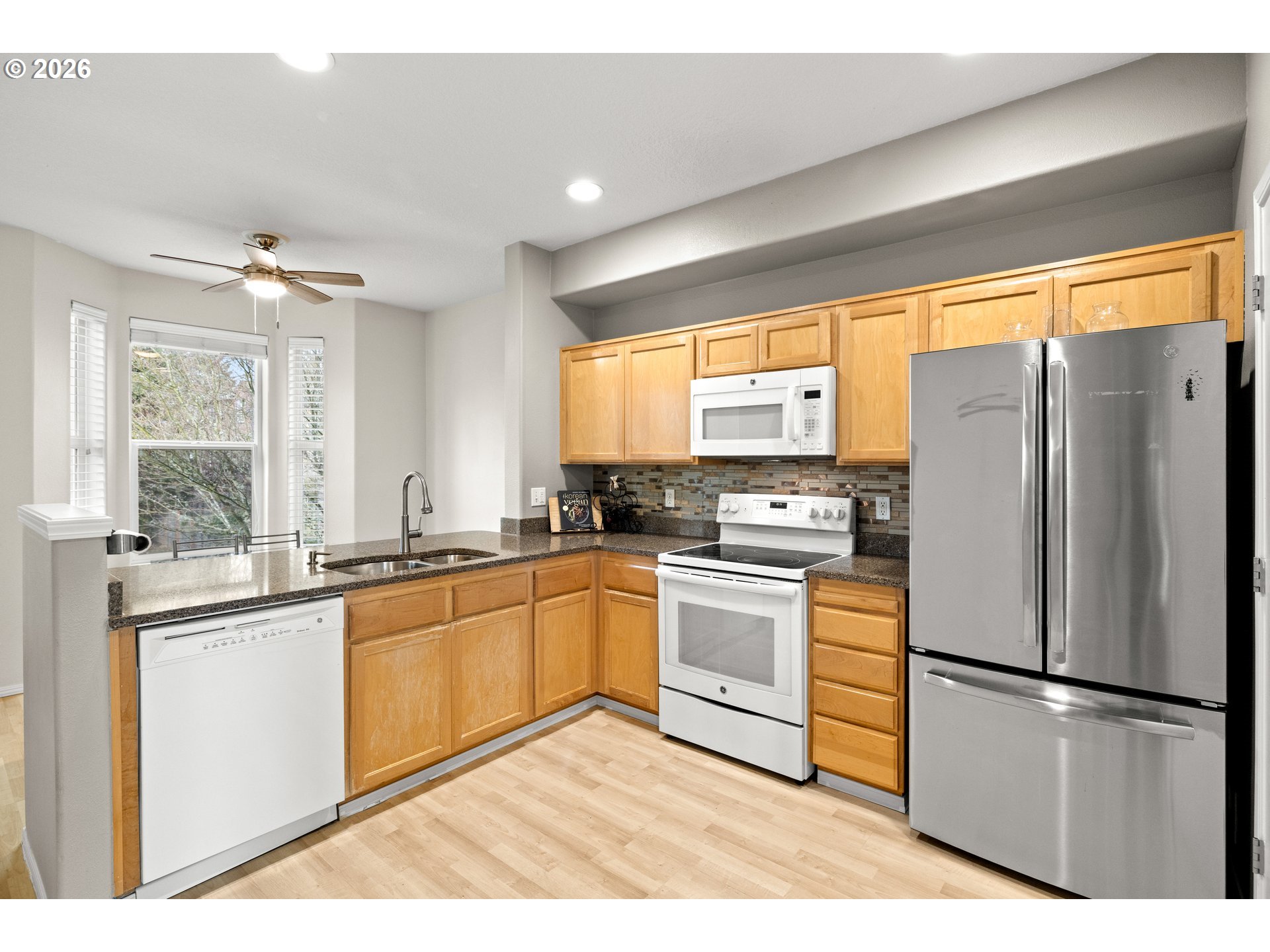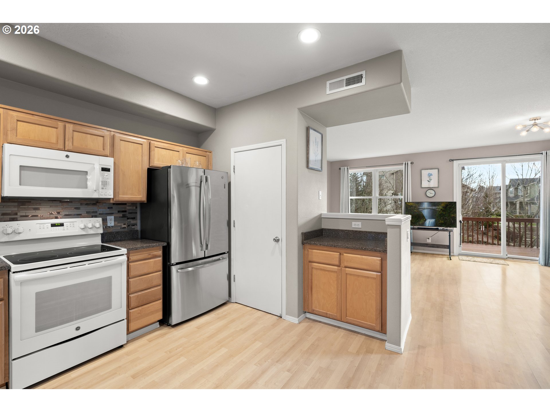 - This townhome is the premier spot in the community - a beautiful end-unit in Orenco Place, ideally situated next to a large green space and filled with natural light. With abundant windows and a sunny southern exposure, this home feels light, warm, and welcoming all day long. Bay windows in the kitchen, living room, office, and primary bedroom add charm and character to the move-in-ready interior. Step outside onto a peaceful deck and fully fenced yard/patio — perfect for relaxing, entertaining, or enjoying time with your furry friends. The home also features a spacious two-car tandem garage with new WiFi garage door opener, offering room for two vehicles, ample extra storage or a home gym. Conveniently located just minutes from Intel, Nike, Orenco Station, Quatama MAX Station, parks, shopping, and restaurants. [Home Energy Score = 7. HES Report at https://rpt.greenbuildingregistry.com/hes/OR10202398]