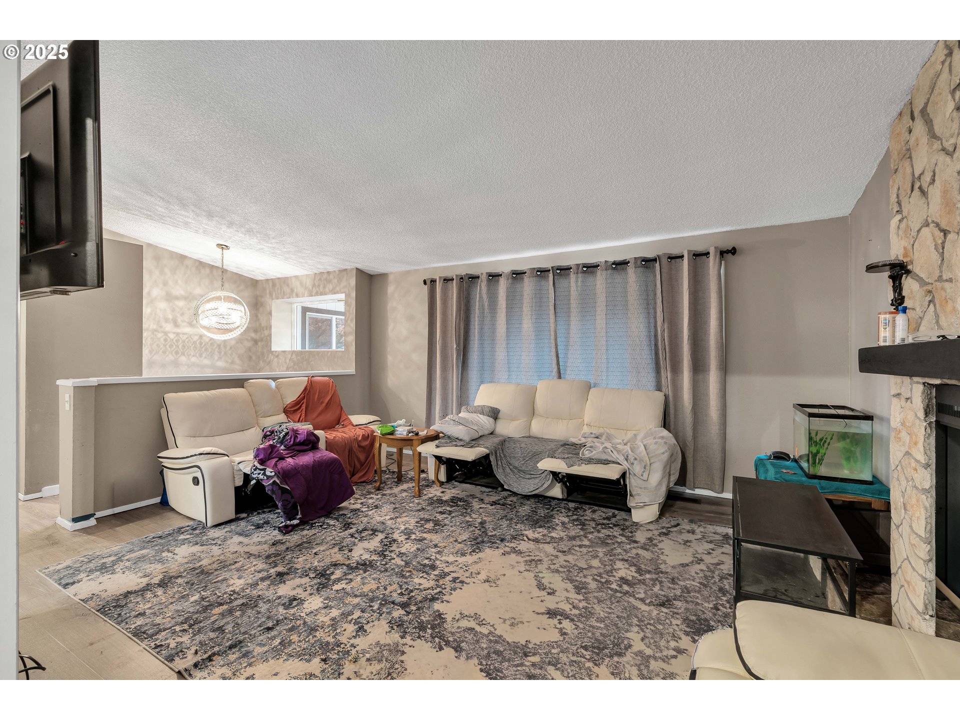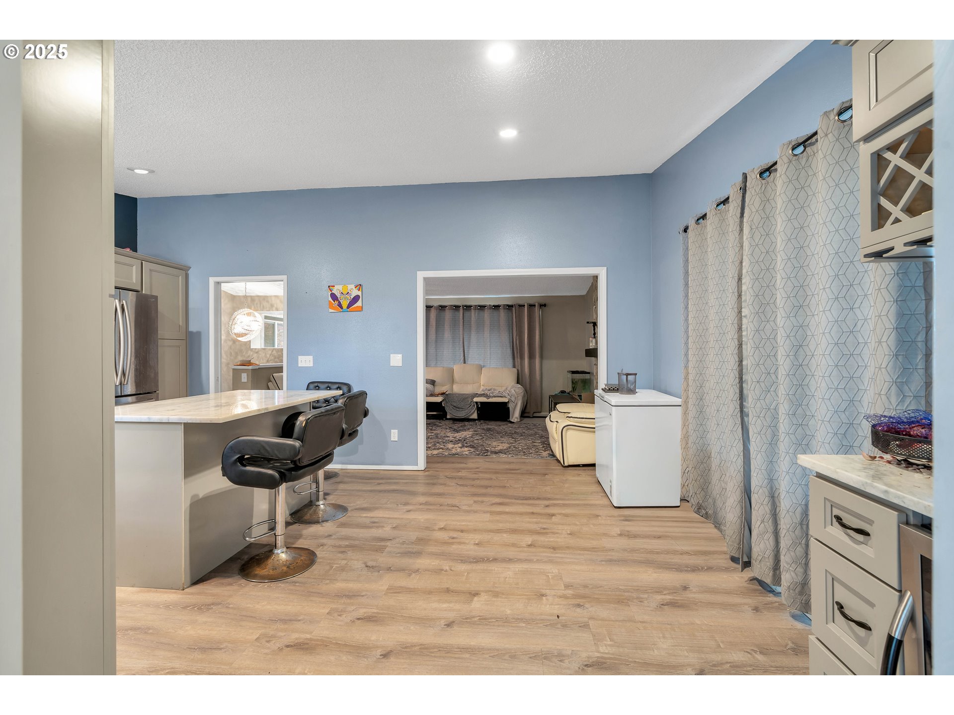 - Spacious 4-Bedroom, 3-Bath Home with Second Kitchen and Modern UpdatesThis beautifully updated two-level home offers style, comfort, and flexibility for a variety of living arrangements. The main level features vinyl flooring throughout, a bright living room with vaulted ceilings and a cozy fireplace, and an updated kitchen showcasing marble surfaces, modern finishes, and open sightlines to the dining area. The dining room includes a ceiling fan and sliding doors that lead to outdoor space, perfect for entertaining.The primary suite is a true retreat with barn doors, a ceiling fan, private deck, and fireplace, creating a warm and inviting atmosphere.Downstairs, the second kitchen with exterior entry makes the lower level ideal for guest quarters, multigenerational living, or rental potential.With four bedrooms, three baths, and thoughtful updates throughout, this home offers both modern comfort and functional design in a desirable setting.