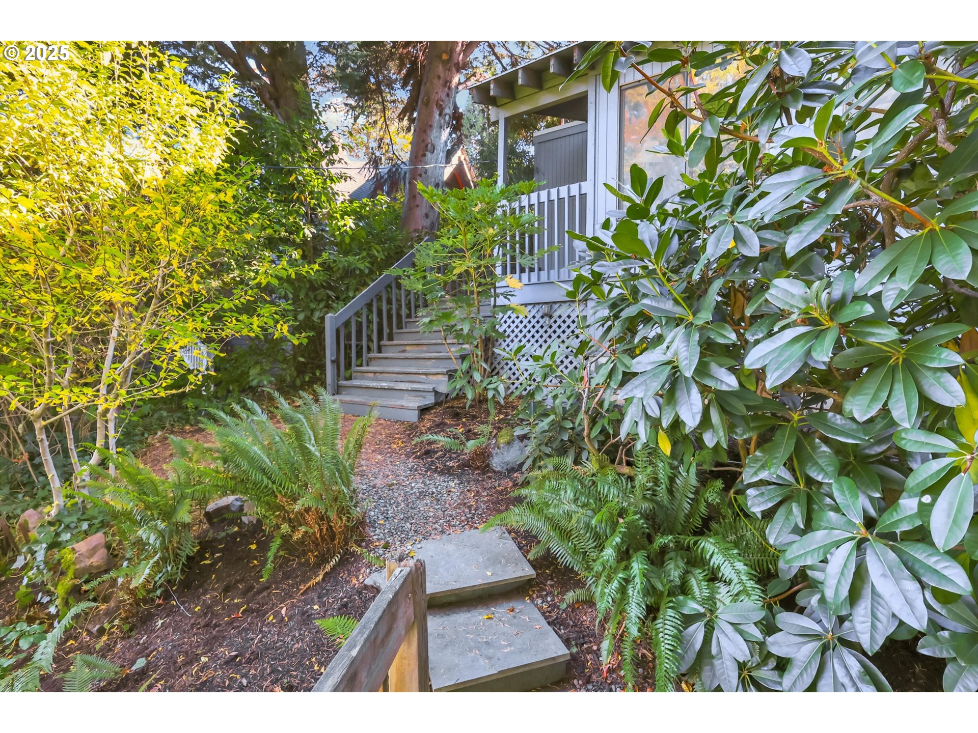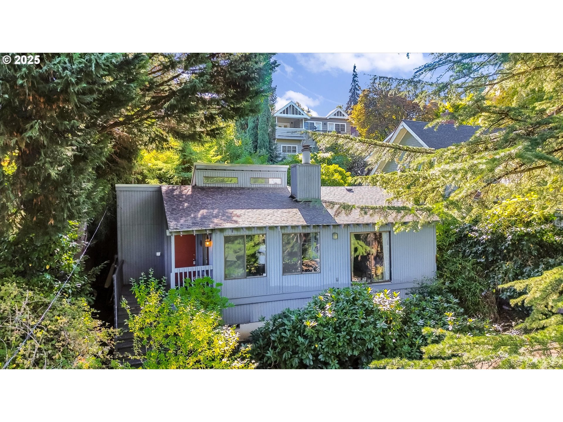 - This well-appointed NW Portland retreat is peaceful and private, yet close to everything! Step into a warm and inviting open living room / kitchen / dining area, with wood-burning fireplace and east-facing views. Sliding doors lead to a wonderfully private, fenced backyard with mature landscaping and a cozy covered seating area. Watch Mt. St. Helens change with the seasons from the living room and covered front porch. The detached, oversized two-car garage is topped with a 240sf studio / office / guest-room space with excellent potential to expand. Very close to Macleay Park, Forest Park trails, and the entire range of NW Portland amenities. Overall, a great entry point into one of Portland's most desirable neighborhoods.